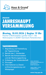 Haus & Grund Garmisch-Partenkirchen vertritt die Interessen der Haus-, Wohnungs- und Grundeigentümer. Als Mitglied erhalten Sie bei uns Informationen rund um Ihre Immobilie und exklusive Serviceangebote, die speziell für Sie als Hauseigentümer, Vermieter, Wohnungseigentümer, Bau- und Kaufinteressenten gestaltet sind.